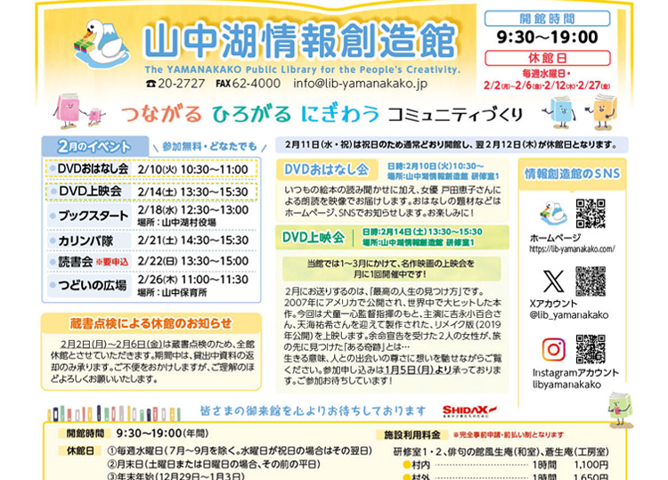 ※ 毎年2月は蔵書点検のため、5日ほど休館いたします。