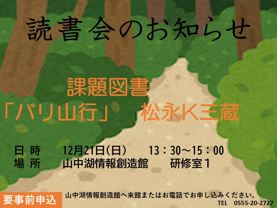 参加希望の方は、山中湖情報創造館へ来館またはお電話でお申し込みください。