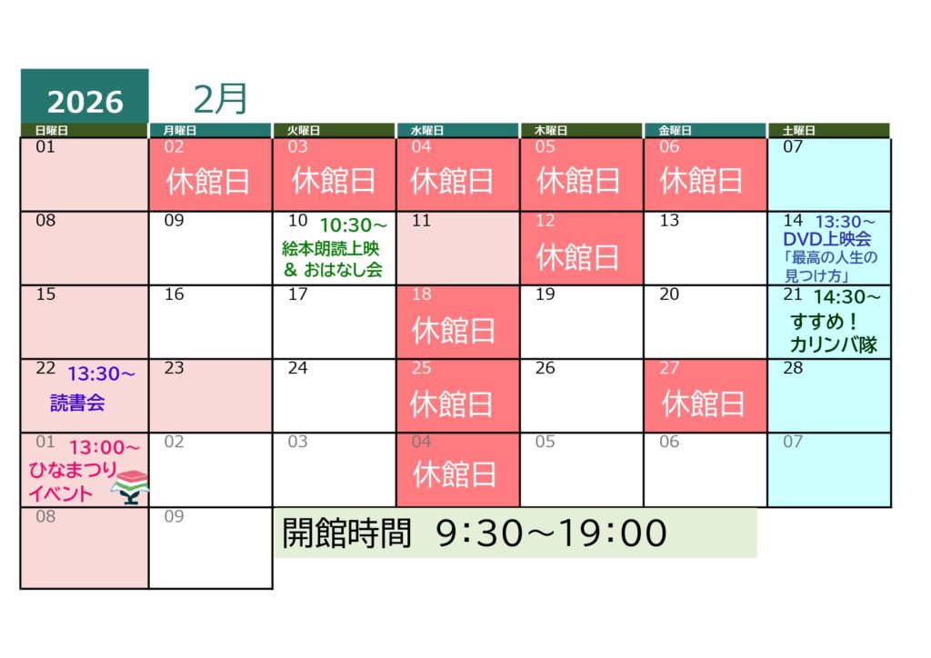 蔵書点検のため、2月2日(月)~2月6日(金)は終日休館とさせていただきます。