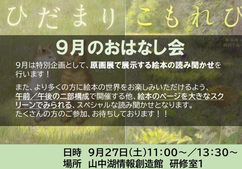 9月のおはなし会は、絵本原画展期間中の特別企画として、岡田千晶先…