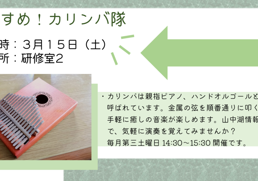 3月のカリンバ隊は2月15日(土)に実施されます。カリンバという…