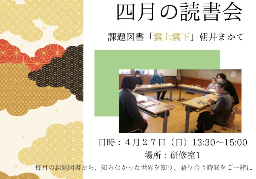 四月の読書会は4月27日(日)13:30から研修室1で開催されま…