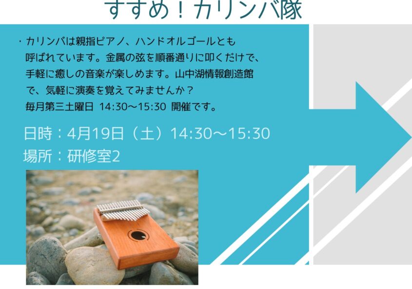 4月のカリンバ隊は4月19日(土)に実施されます。カリンバという…