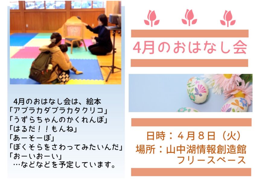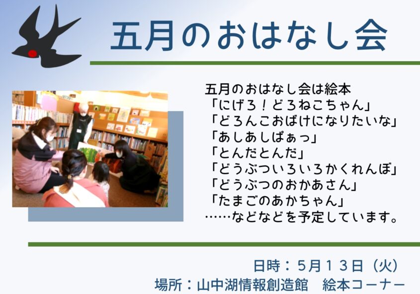 5月13日(火)、AM10:30より山中湖情報創造館絵本コーナー…