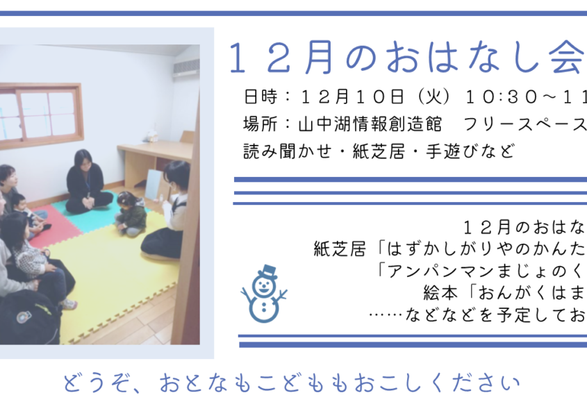 12月の山中湖情報創造館のイベント情報をお知らせします。 12月…