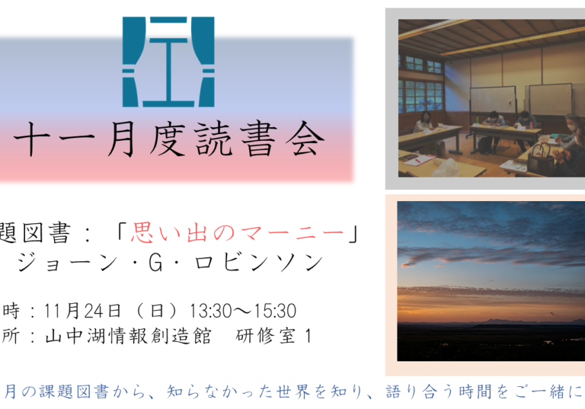 十一月度読書会は11月24日(日)13:30から研修室1で開催さ…