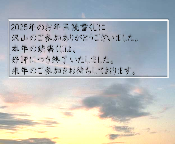 2025年のお年玉読書くじは、好評につき終了いたしました。沢山の…