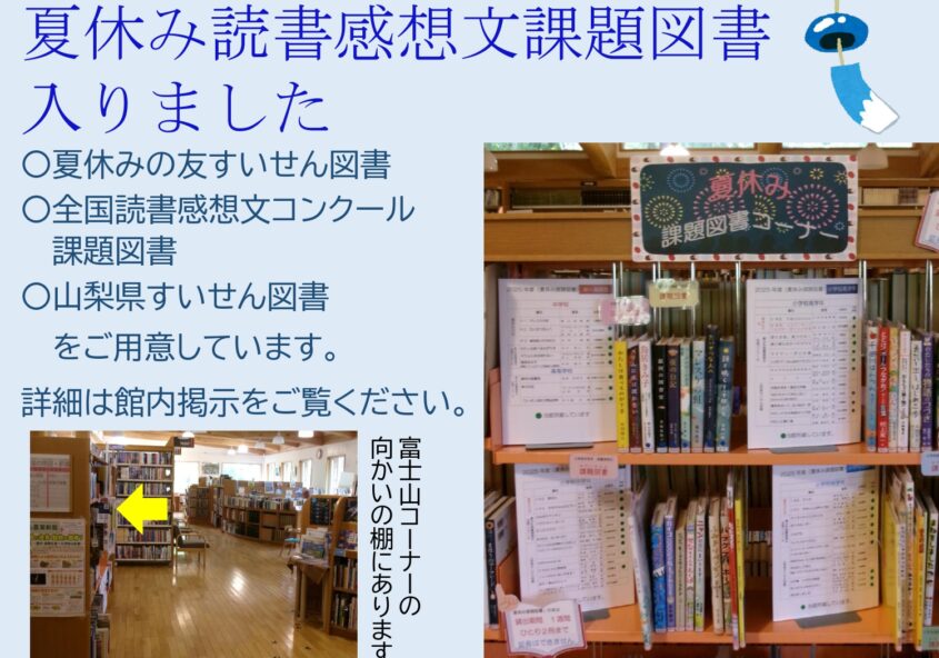 今年の夏も「夏休み課題図書コーナー」として〇夏休みの友すいせん図…
